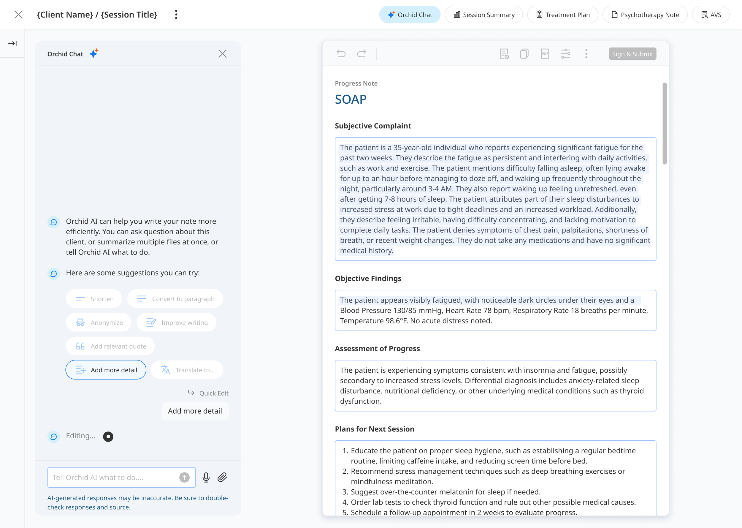 Orchid is a U.S.-based mental health platform providing AI-powered EHR, telehealth, and patient-facing tools for clinicians and practices. Mental health professionals were spending excessive time on documentation and administrative work (often up to hours per patient) on top of already demanding clinical sessions.