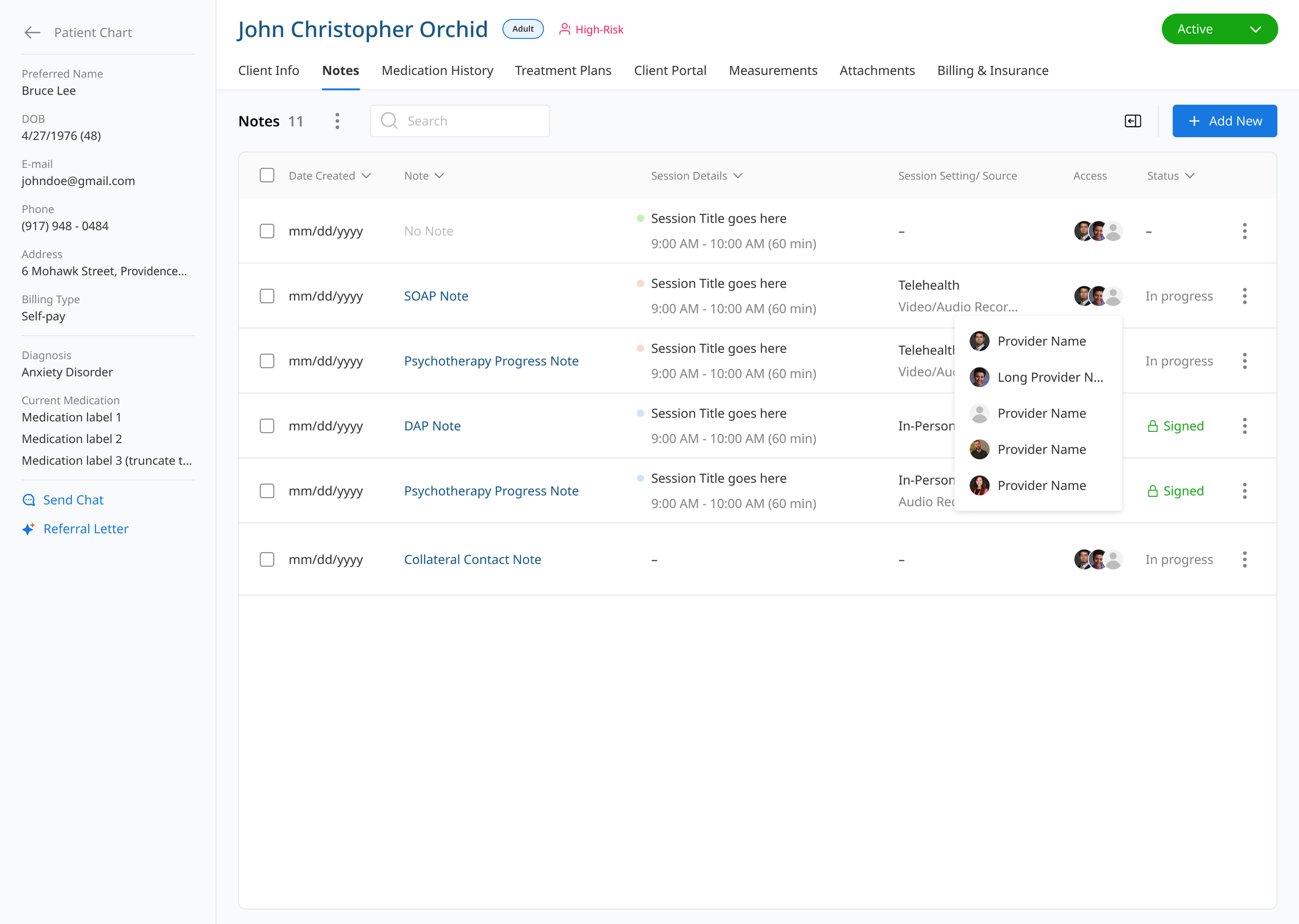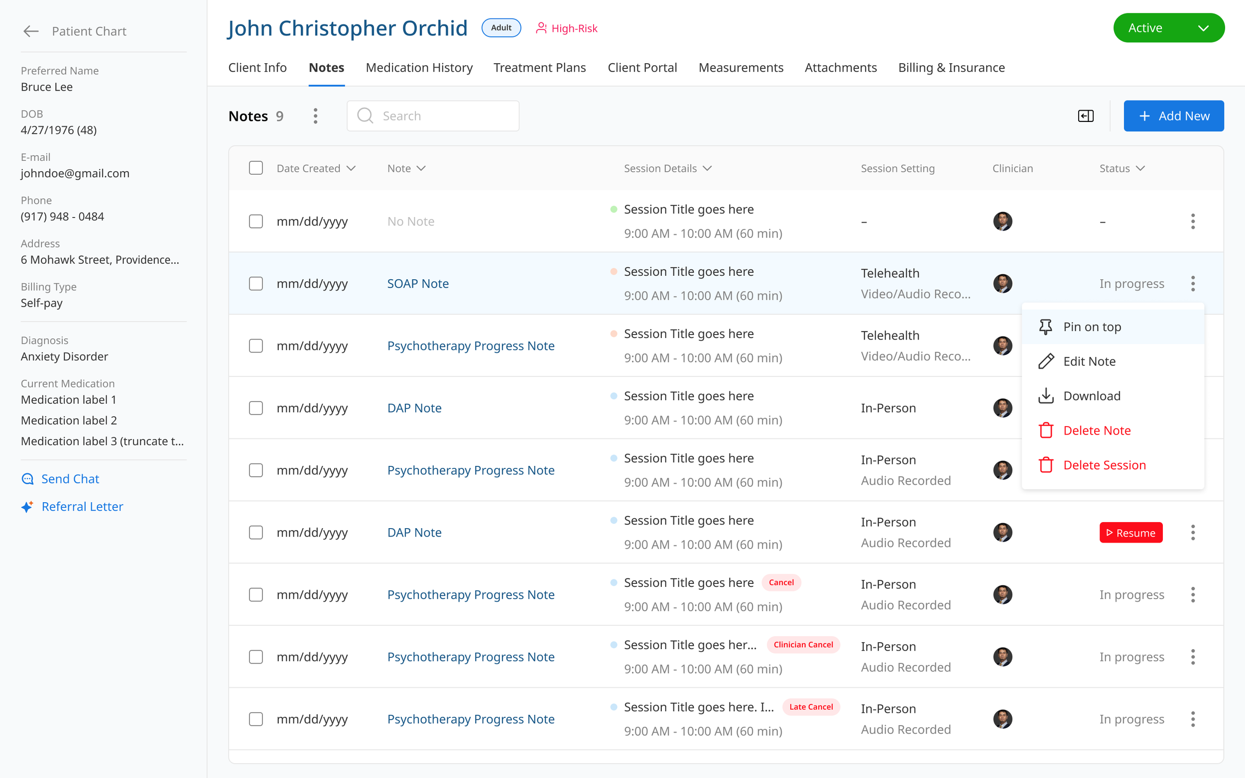 As the sole lead designer, I owned every surface of the product—from the core EHR platform and AI Smart Note-taking to the Chrome extension, mobile and tablet experiences, and both sides of the ecosystem: clinicians and their clients. Beyond the product itself, I also designed supporting assets including landing pages, partnership collateral, and subscription-tier feature sets (EHR + AI, AI-only, and EHR-only).